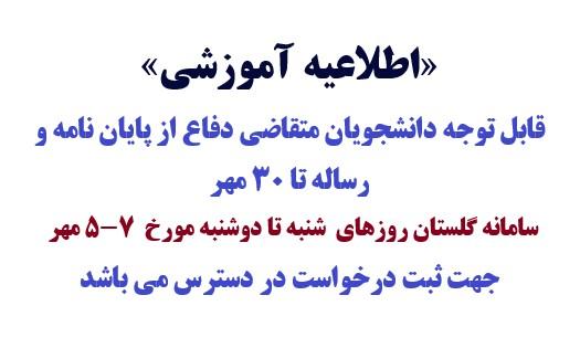 قابل توجه دانشجویان متقاضی دفاع از پایان نامه تا 30 مهر 1404