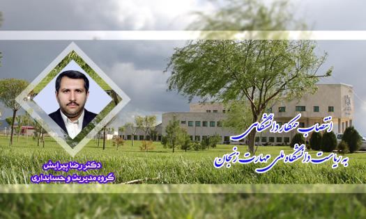 جناب آقای دکتر رضا پیرایش انتصاب شایسته حضرت عالی به ریاست دانشگاه ملی مهارت زنجان را تبریک عرض می نماییم.