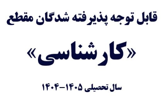 ضمن تبريك و خيرمقدم به شما پذيرفته شدگان گرامي، به اطلاع می رساند زمان پذیرش اینترنتی از روز یکشنبه مورخ 1404/07/20 تا روز دوشنبه 1404/07/21 می باشد. لازم به توضيح است كه ثبت نام اينترنتي الزامي است. تاریخ مراجعه حضوری و تحویل مدارک شما به دانشگاه توسط سامانه آموزش به هنگام ثبت نام اینترنتی تعیین و توسط سامانه اعلام خواهد شد. محل ثبت نام حضوری کتابخانه مرکزی دانشگاه خواهد بود. (لطفاً با انجام ثبت نام اینترنتی و در زمان اعلام شده توسط سیستم ، جهت تحویل مدارک به دانشگاه مراجعه فرمایید.) ;
