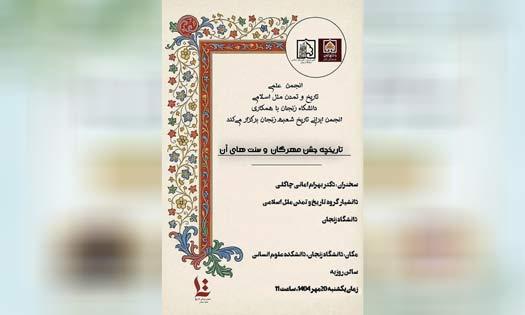 مراسم تاریخچه جشن مهرگان و سنت های آن همراه با موسیقی و نقاله خوانی با سخنرانی دکتر بهرام امانی( دانشیار دانشگاه زنجان) و با حضور اساتید محترم گروه