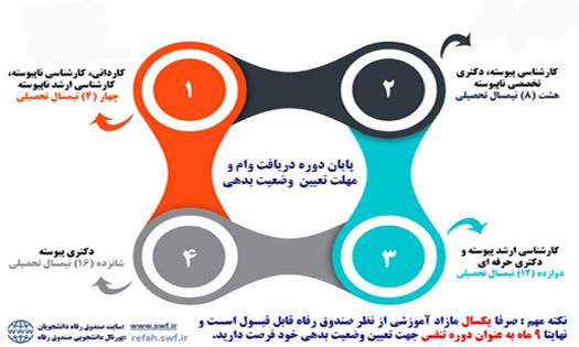 با توجه به اتمام سنوات مجاز عده کثیری از دانشجویان از نظر صندوق رفاه دانشجویان و صدور دفترچه تک قسطه برای مشمولین فوق ، از کلیه دانشجویانی که سنوات مجاز آنها به اتمام رسیده است ، درخواست می شود جهت تعیین تکلیف بدهی، قبل از بسته شدن فایل توسط صندوق رفاه دانشجویان اقدام نمایند.