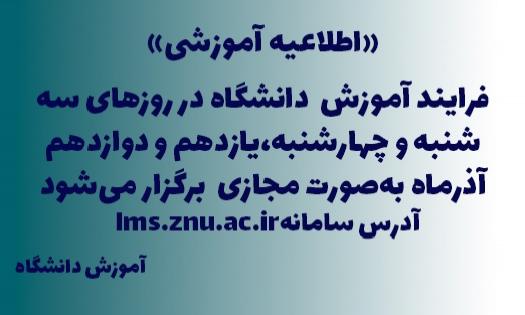 فرایند آموزش دانشگاه‌ در روزهای سه‌شنبه و چهارشنبه،یازدهم و دوازدهم آذرماه به‌صورت مجازی برگزار می‌شود: