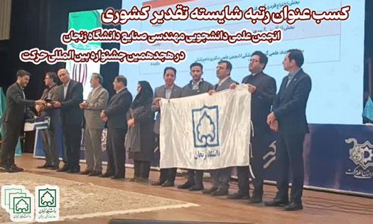 کسب عنوان رتبه شایسته تقدیر کشوری انجمن علمی دانشجویی مهندسی صنایع دانشگاه زنجان در بخش رویداد علمی گروه فنی و مهندسی در هجدهمین جشنواره بینالمللی حرکت