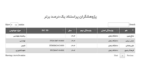 بر اساس تحلیلهای مؤسسه استنادی و پایش علم و فناوری جهان اسلام (ISC)، در سال ۱۴۰۴، ۱۱۴۲ پژوهشگر ایرانی در فهرست پژوهشگران یک درصد برتر جهان قرار گرفتند. در این میان، نام چهار نفر از اعضای محترم هیأت علمی دانشگاه زنجان، جناب آقایان دکتر علی رمضانی، دکتر فرهنگ رضوی، دکتر صالح مبین و دکتر عباس ربیعی، موجب درخشش و اعتبار بیشتر دانشگاه زنجان شد.