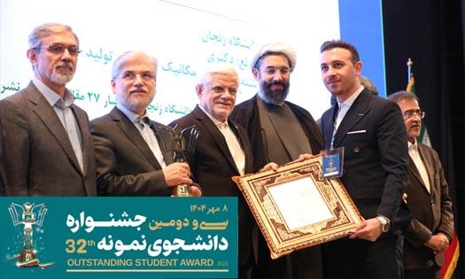 "افتخارآفرینی دانشجوی دکتری رشته مهندسی مکانیک دانشگاه زنجان در سی و دومین جشنواره دانشجوی نمونه کشور"